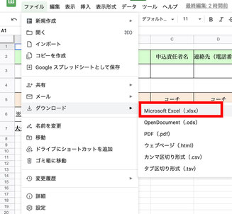 ファイル → ダウンロード → Microsoft Excel(.xlsx)を選択し、保存を実行してから編集してください。